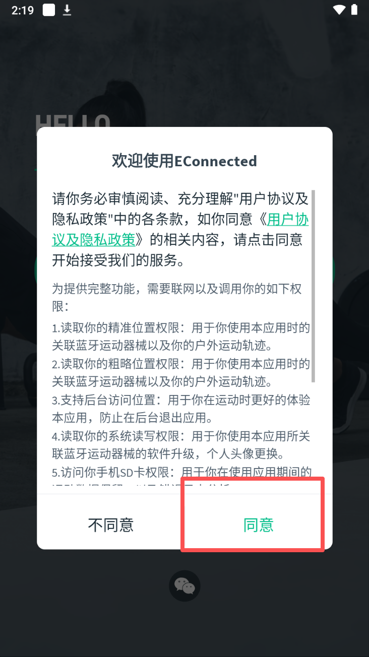 2、阅读并同意用户协议及隐私政策,点击“同意”继续。