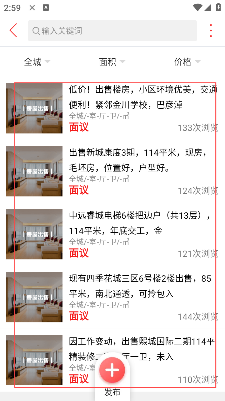 2、在列表页,选意向房屋出售信息,点进详情页。