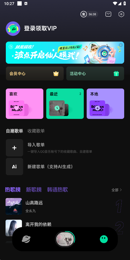 QQ音乐概念版(波点音乐),这是一款能让你永久免费听歌的音乐播放软件。只需每日免费领取VIP,就能实现永久免费畅听。它与QQ音乐拥有同款曲库,还支持使用QQ音乐账号登录。在这里,全网海量音乐任你免费聆听,上亿正版音乐资源丰富。无论是搜索歌手、歌曲还是专辑,都轻松便捷,还能同步QQ音乐歌单,也支持导入歌单,为你打造沉浸式的免费听音乐体验。