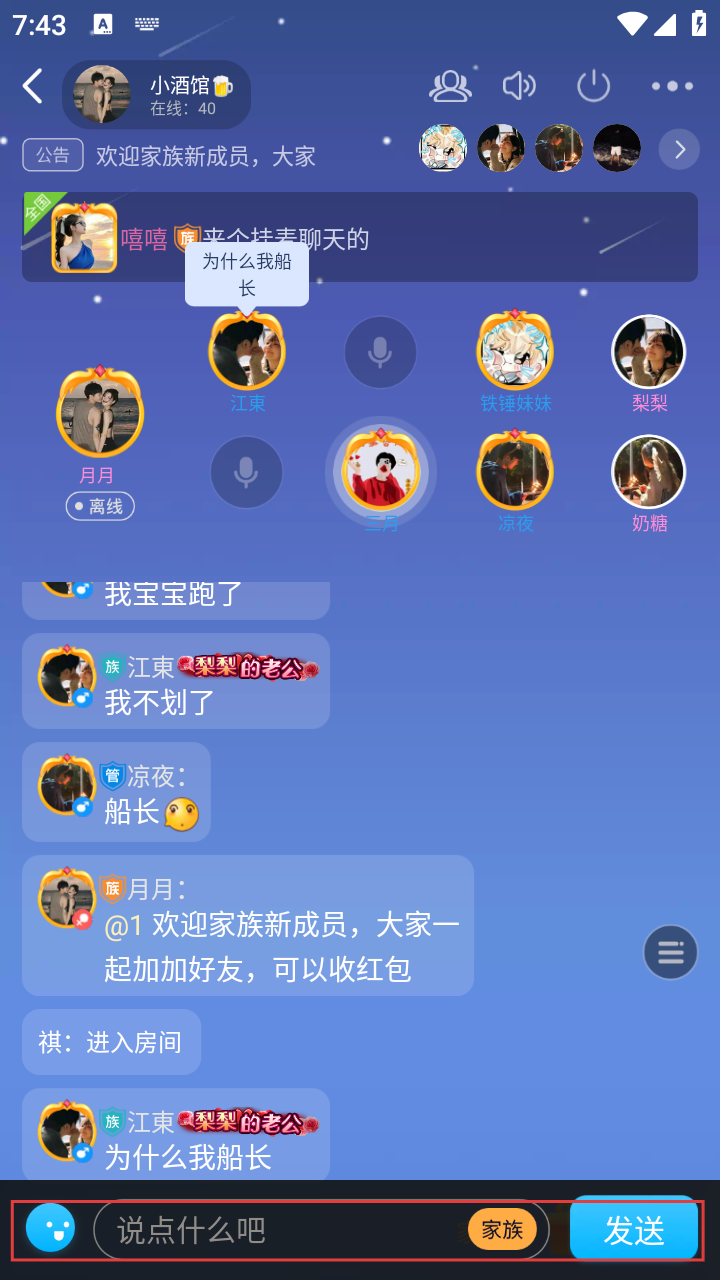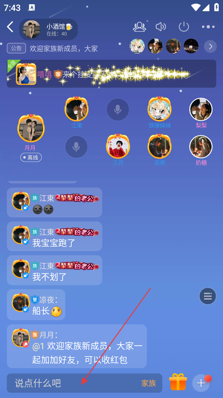 3、进入闲聊房间后,若想参与聊天,点击底部【说点什么吧】输入框,准备输入内容。