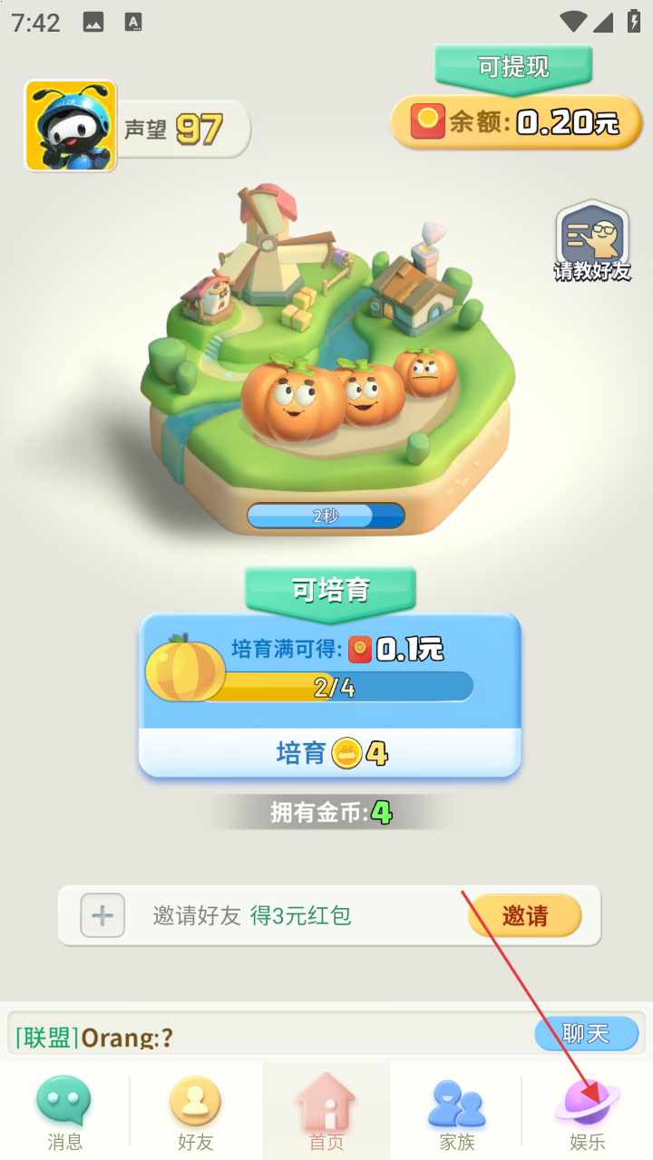 1、在派派主界面,若想进入娱乐相关页面,点击底部【娱乐】,切换到娱乐页面。
