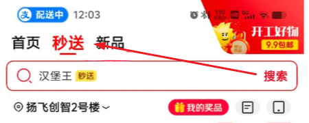 1、第一步,要将京东APP更新至最新版本。完成更新后,打开京东,在首页找到并点击“秒送”。