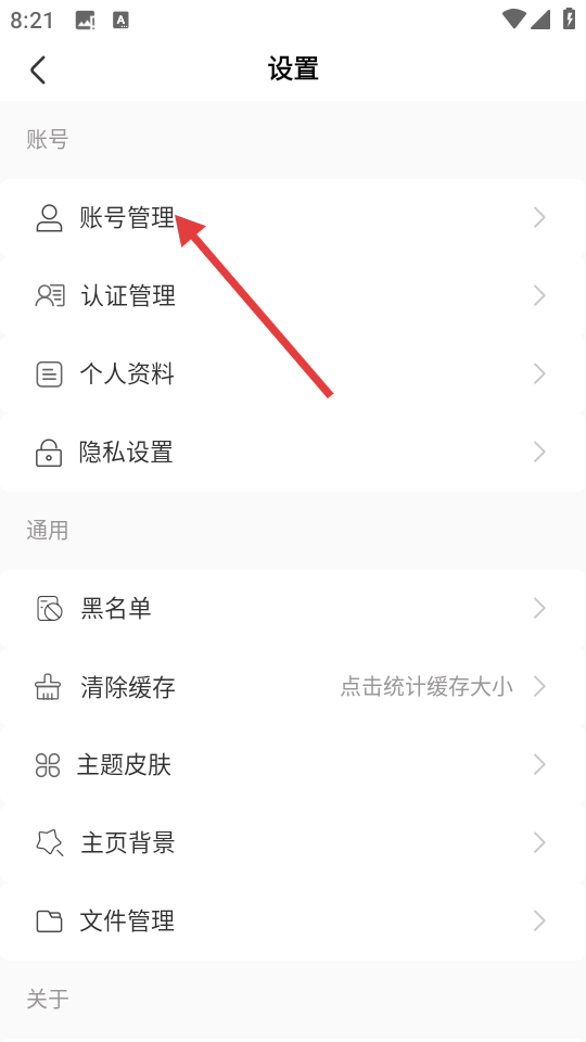 2. 在设置页面当中,点击【账号管理】选项,随即进入账号管理界面。