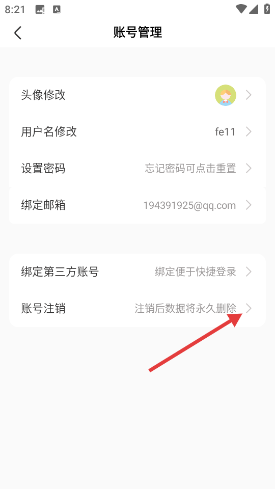 3、在账号管理界面,点击【账号注销】,进入账户注销说明页。