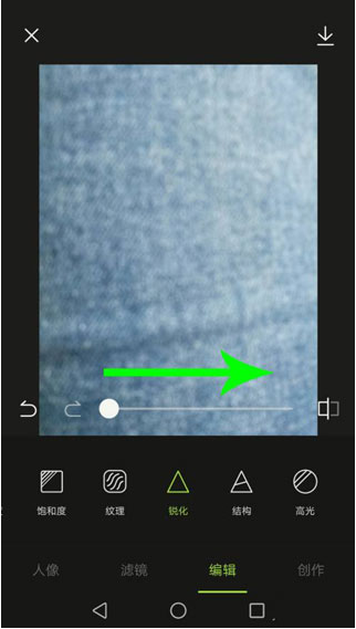 5、完成优化后,向左滑动工具栏,接着点击“锐化”。