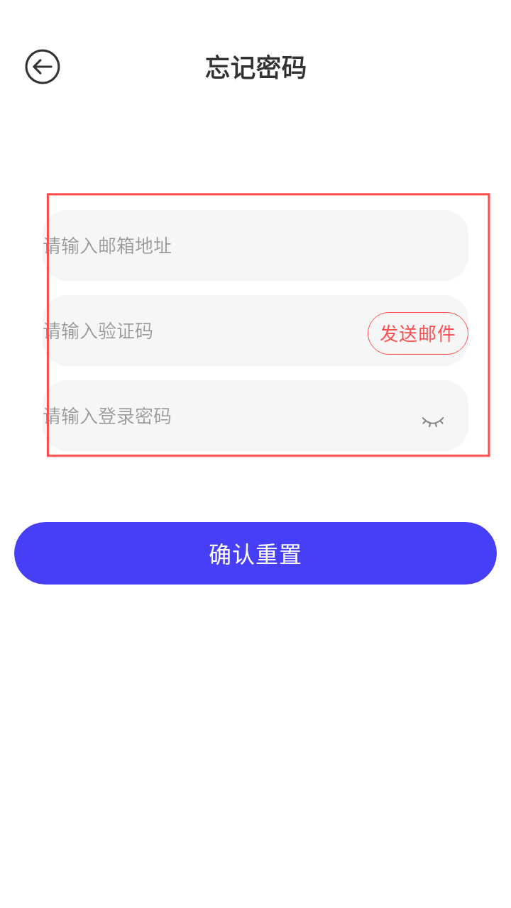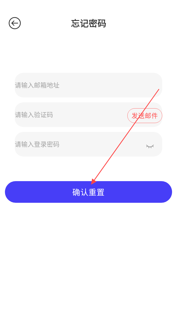 3、点【发送邮件】,收验证码填好,再输新登录密码,点【确认重置】。