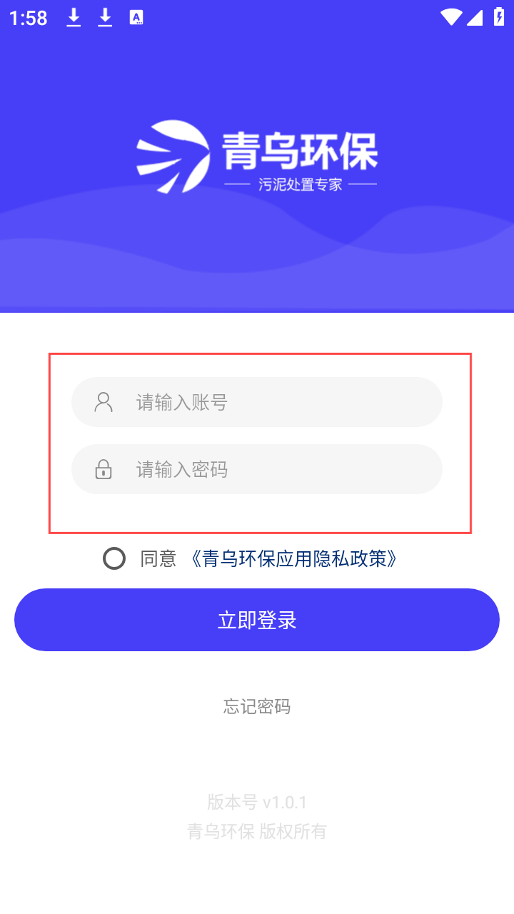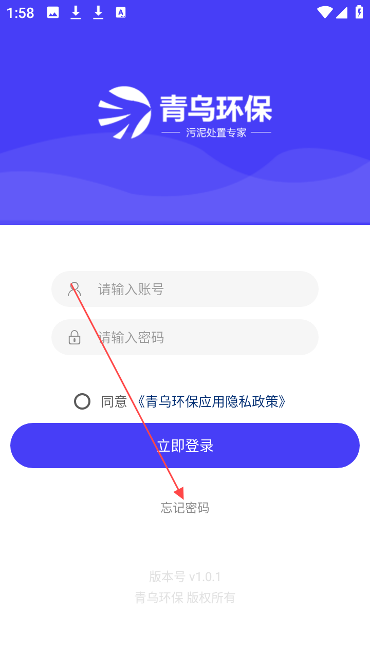 1、在【青鸟环保】登录页,点【忘记密码】,进密码重置流程。