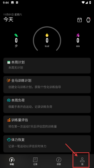 1、打开运动训练类,点击底部我选项,进入个人中心页面。