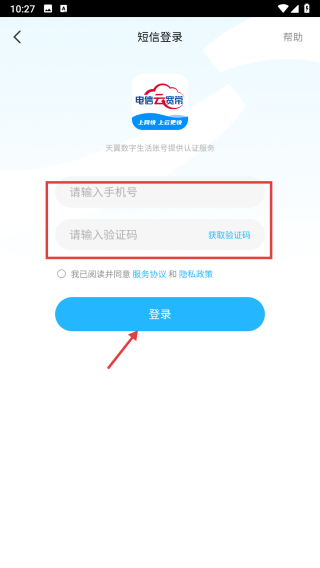 4、来到短信登录页面,填入手机号,获取验证码并输入,勾选同意协议,接着点击登录按钮,即可完成账号登录操作。