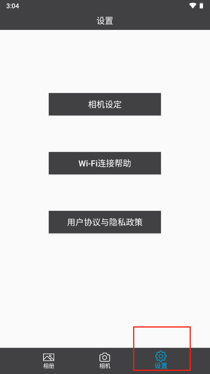 3、连接摄像机:点击“相机”图标,通过Wi-Fi连接摄像机。