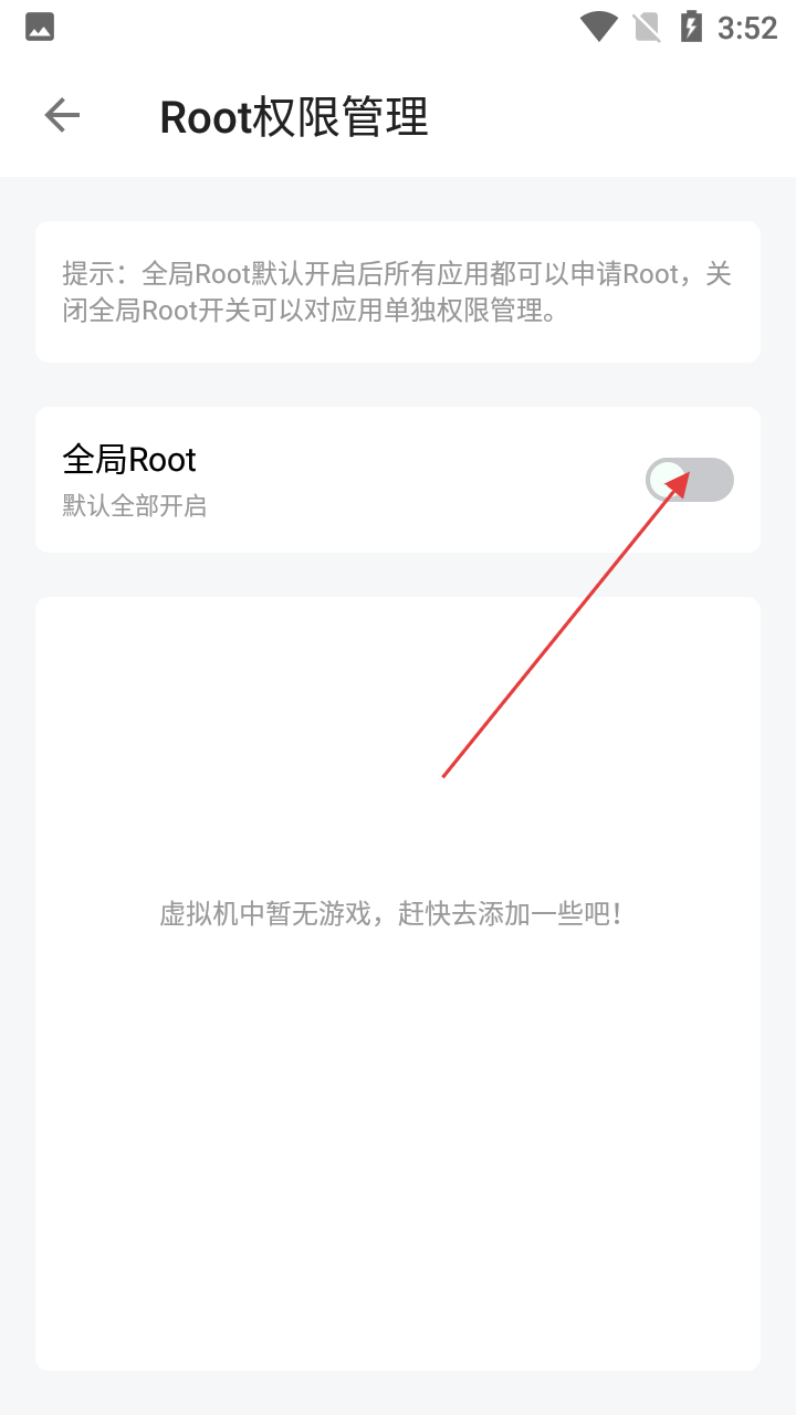 4、在Root权限管理页面,可开启“全局Root”开关,开启后所有应用可申请Root权限,也可关闭开关对应用单独管理权限。