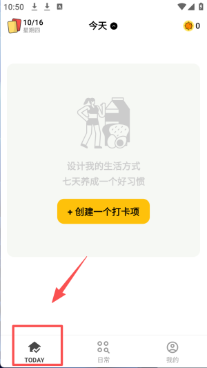 2、在“TODAY”页面,点击“创建一个打卡项”按钮,开始设定新习惯。