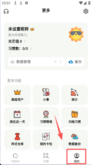 4、在“我的”页面,点击“数据备份”选项,进行数据的备份管理。