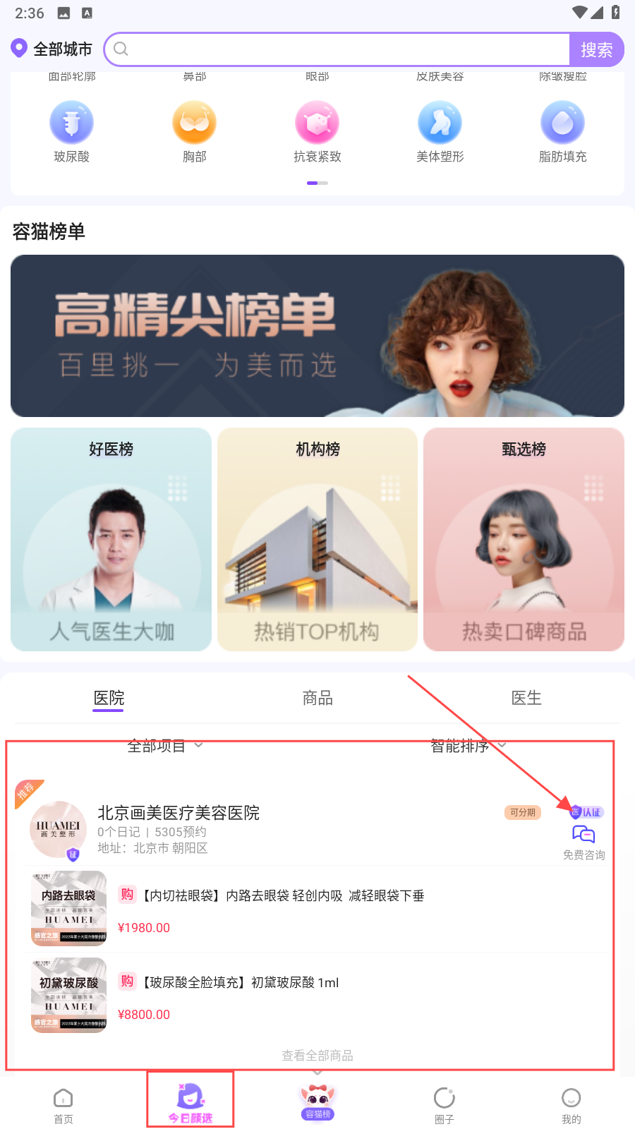2、在今日颜选可以免费咨询医院。