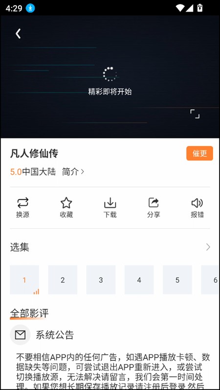4、我们只需点击相应的视频进入观看即可。此外,在这里还能够看到换源、收藏、、分享、报错等一系列功能按钮,可谓是相当贴心。