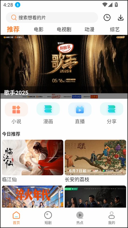 1. 开启软件后,点击顶部的搜索栏,就能搜索自己感兴趣的电影和电视剧。