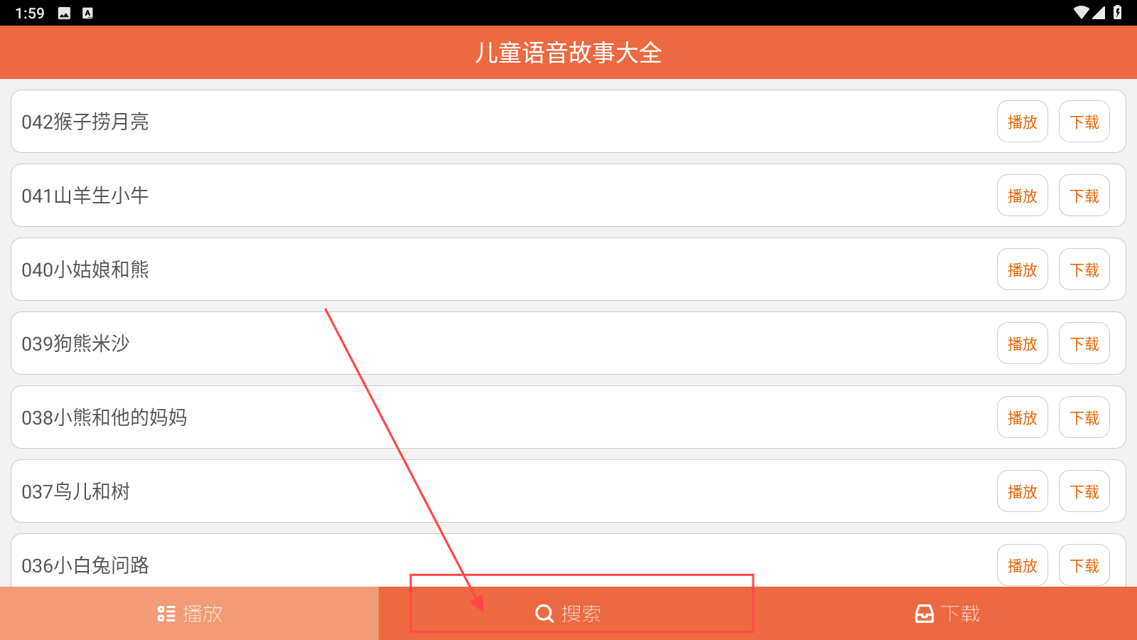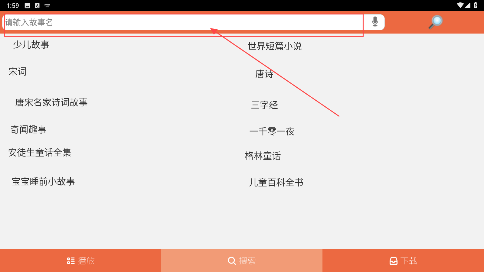 2、想听主页没有的故事,可以点击【搜索】。
