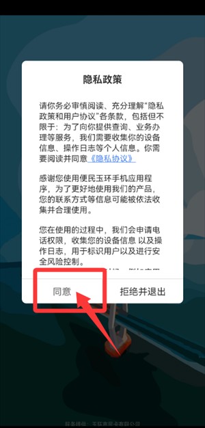 1.使用便民玉环APP时,先打开应用并同意隐私政策,随后进入登录页面。