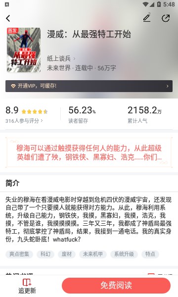 3. 细节处的精致:饕餮小说在一些细节方面进行了优化,比如阅读界面加入了滑动调节亮度的设计;