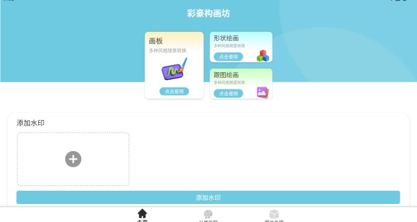1.软件首页浏览:当你成功进入软件首页,会看到画板、形状绘画以及跟图绘画这几个功能选项,可根据个人喜好自由挑选使用。