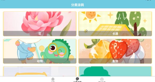 4.分类涂鸦选择:切换至分类涂鸦板块,这里提供了花草、卡通、动物和食物等多种类型的画作供你挑选。