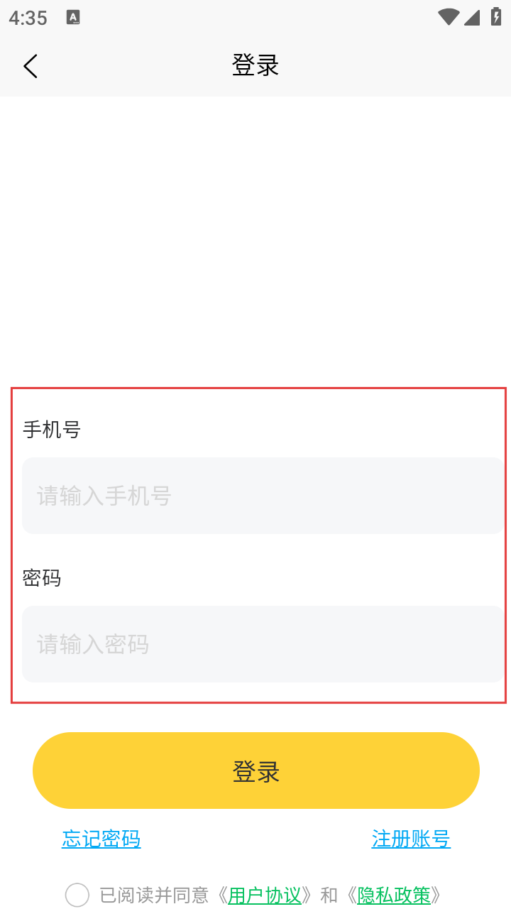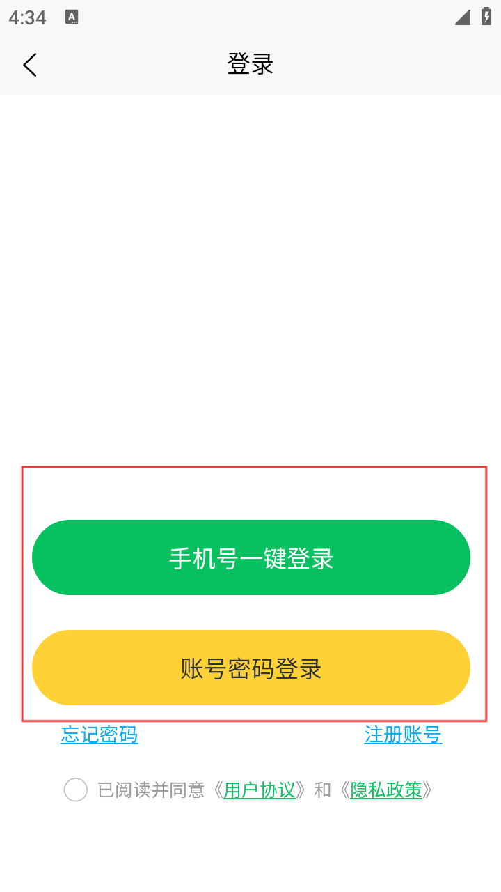 3、在【登录】页选【手机号一键登录】或【账号密码登录】,勾选协议。