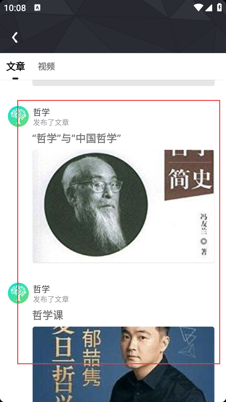 4、进入分类后,看文章/视频,如“哲学”发布的《“哲学”与“中国哲学”》。