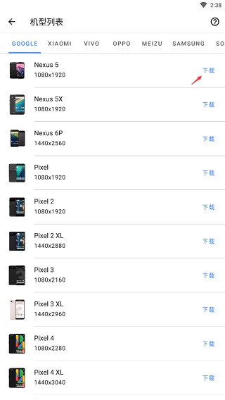 2.接着,选择并点击“下载”对应的机型模板选项。