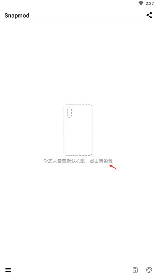 1.首先,轻触屏幕中央显示的提示文字“你尚未设置默认机型,请点击此处进行设置”。