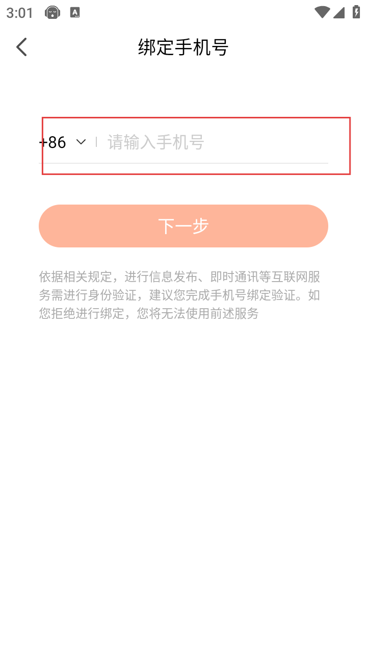 4、在绑定手机号页面,输入手机号,点击【下一步】按钮,按照提示完成验证码输入等操作,即可完成手机号码绑定。