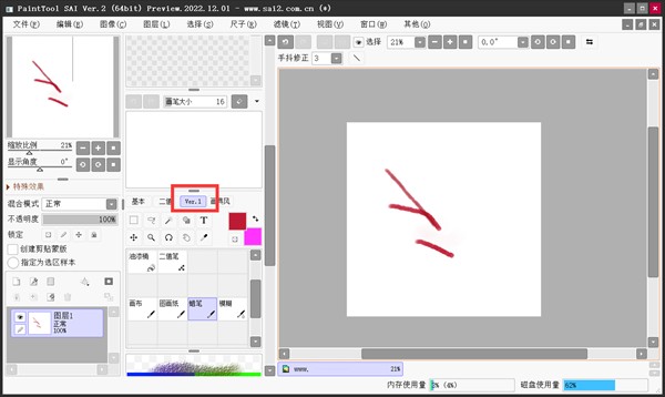 一般SAI软件在刚刚打开的时候,占用的内存并不高。但是随着进一步地使用,每打开一个文档都会占用一定的内存,例如:文档的像素、色彩、图层越多,内存占用率就会越高。此外,如果说您使用的SAI软件为网站查找的POJIE版本,也会出现内存使用率太高的问题,因为其在后台运行的时候,还会夹带着一些其它的运用程序在后台。