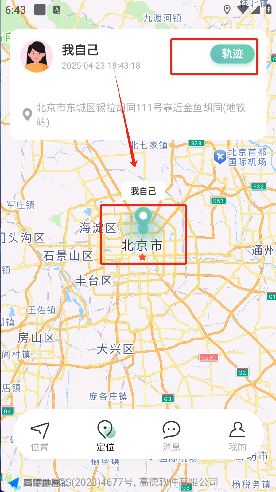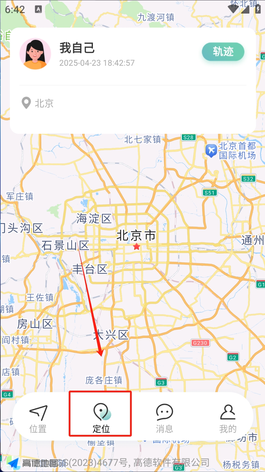 4、在定位页面,点击“轨迹”按钮,查看自己的移动轨迹。