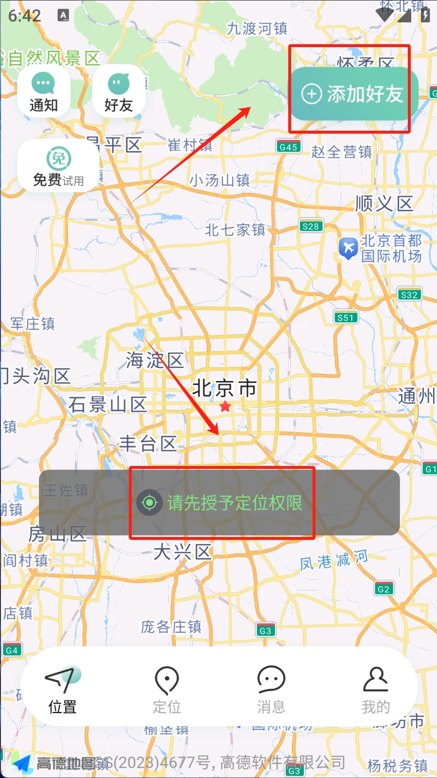 1、打开地图页面,点击“添加好友”按钮,开始使用定位分享功能。