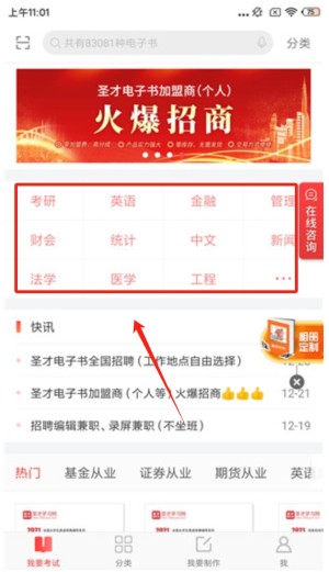 1、打开圣才电子书应用,进入主界面。在主界面上,您可以看到各种分类,如考研、英语、金融等,选择您感兴趣的分类进行浏览。