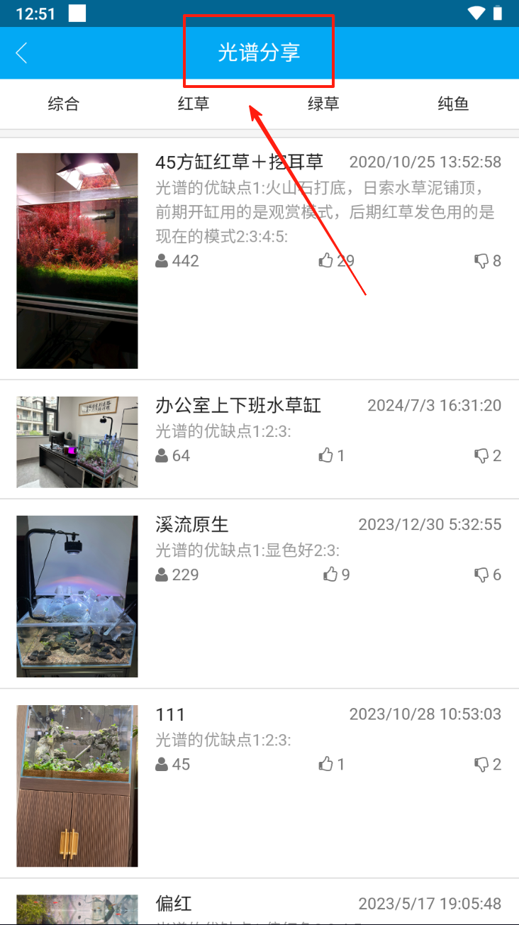 4、分享光谱设置:在光谱分享页面,选择红草分类查看和分享光谱设置。