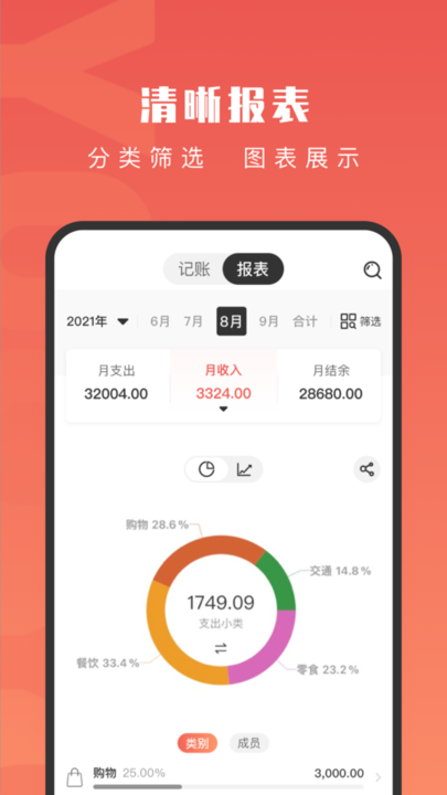 2、强大的报表筛选系统允许按时间、类型、金额等多维度条件组合查询,快速定位特定消费记录,满足个性化分析需求。