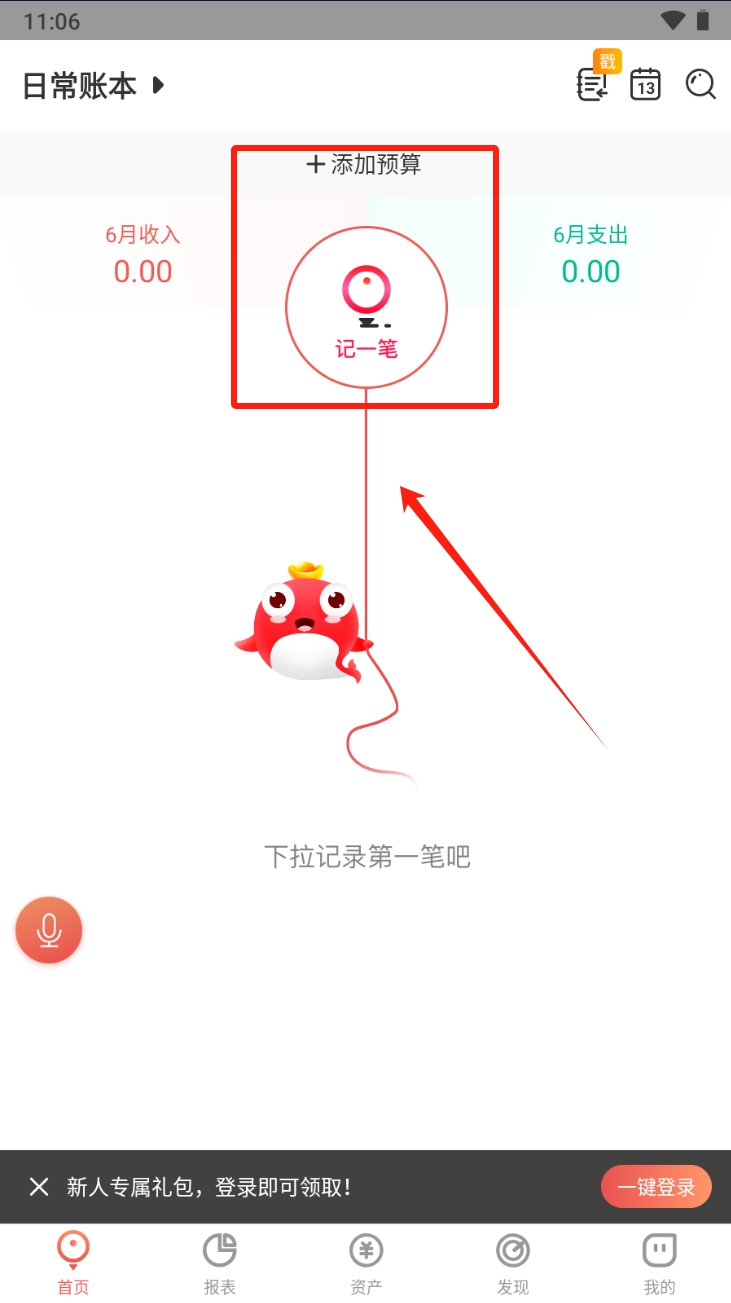 1、点击“添加预算”并选择“记一笔”开始记录您的第一笔账目。