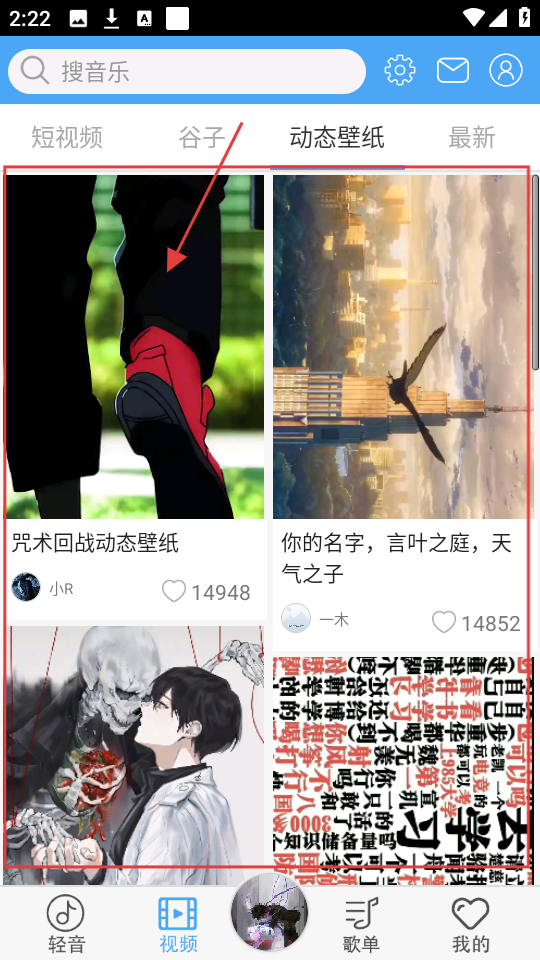 2、在动态壁纸列表页面,找到目标动态壁纸,比如【咒术回战动态壁纸】,点击进入播放页面哦。