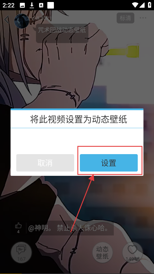 4、在设置选项中,点击【设置】按钮,即可将该视频设置为动态壁纸,让桌面更具活力啦。
