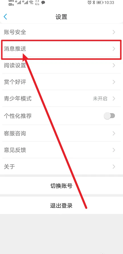 2、进入设置界面,点击【消息推送】