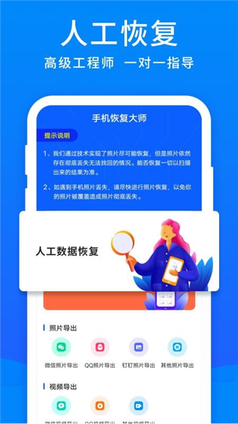 1、为用户提供图片恢复功能,用户可以一键恢复各种类型的图片;