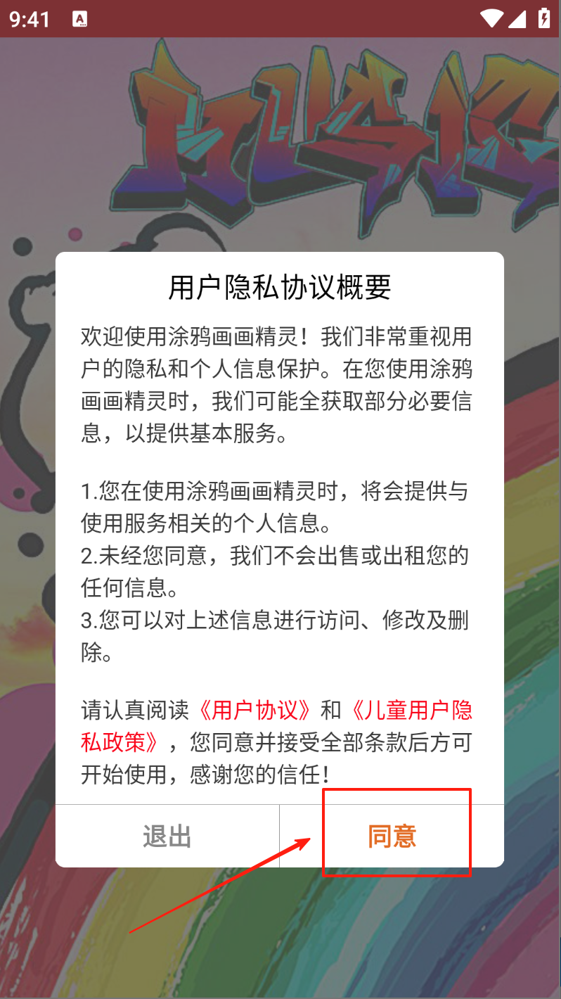 如何首次启动涂鸦画画精灵并了解隐私政策
