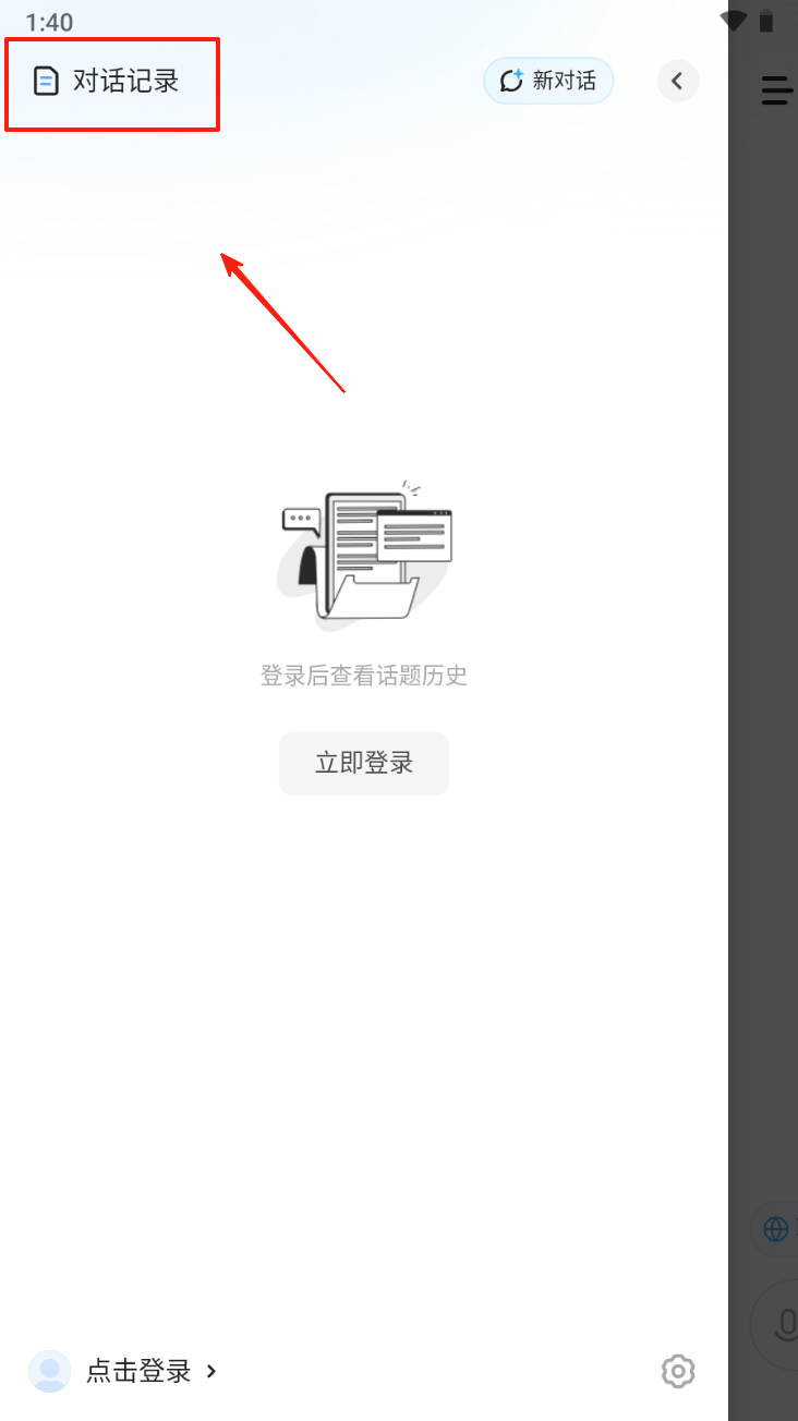 3、查看和管理对话记录:点击“对话记录”以登录并查看历史记录。