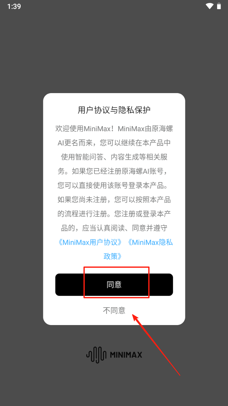 1、同意用户协议与隐私政策:点击“同意”按钮以接受协议并继续。