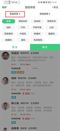 三、进入后,在筛选科室中选择要预约的科室,并点击筛选出的医生。