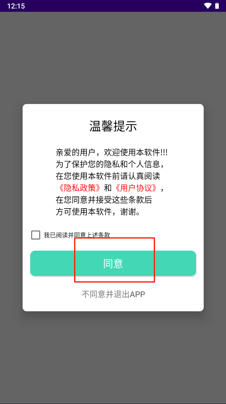 1、同意隐私政策和用户协议。勾选“我已阅读并同意上述条款”,然后点击“同意”按钮。
