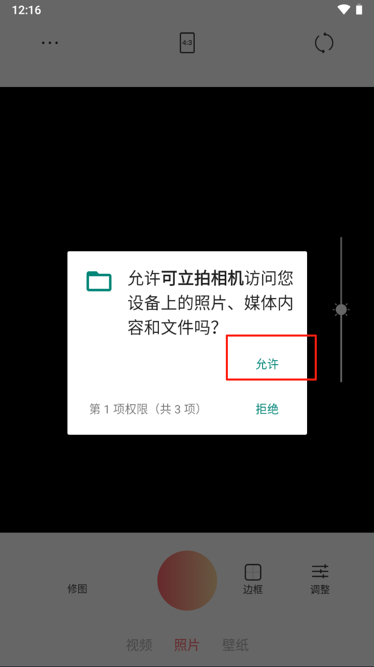 2、允许应用访问照片。在权限请求中选择“允许”以访问设备上的照片。