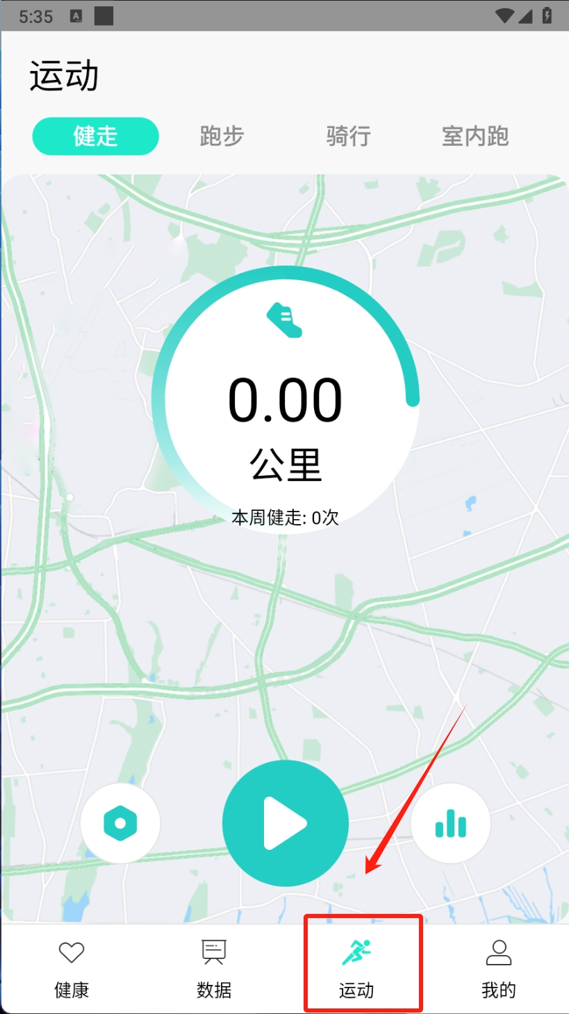 3、在运动页面记录和追踪运动情况。用户可以在运动页面选择不同的运动模式,如健走、跑步等,并记录运动距离和次数。