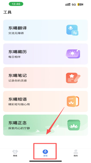 2、在工具界面,点击“东喵翻译”功能,使用翻译服务。