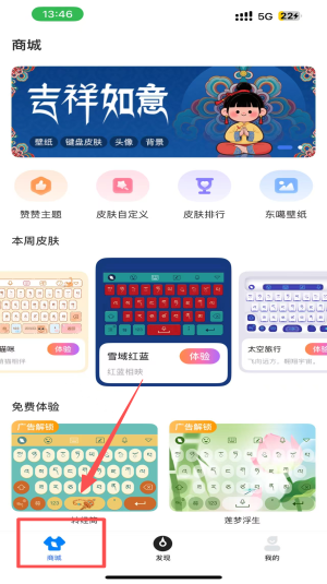 1、在商城界面,点击“键盘”选项,选择并体验不同的键盘皮肤。